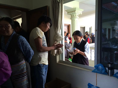 藏醫(yī)藥學不僅是我國民族醫(yī)學的重要組成部分,在毗鄰的喜馬拉雅地區(qū)也廣為流傳,在尼泊爾深受當?shù)匕傩招刨嚒?/SPAN>6月13日,由公司董事長雷菊芳女士帶隊,包括藏醫(yī)及助手等在內的醫(yī)療救援小分隊抵達尼泊爾加德滿都,用藏醫(yī)藥為尼泊爾人民提供災后醫(yī)療救助服務。次日醫(yī)療小分隊即展開了藏醫(yī)義診活動,候診的患者排滿了走廊。截止6月20日,共義診病人700位。本次義診活動還將根據(jù)災區(qū)患者情況持續(xù)進行,我們也將與前方同事保持聯(lián)系、跟進報道。