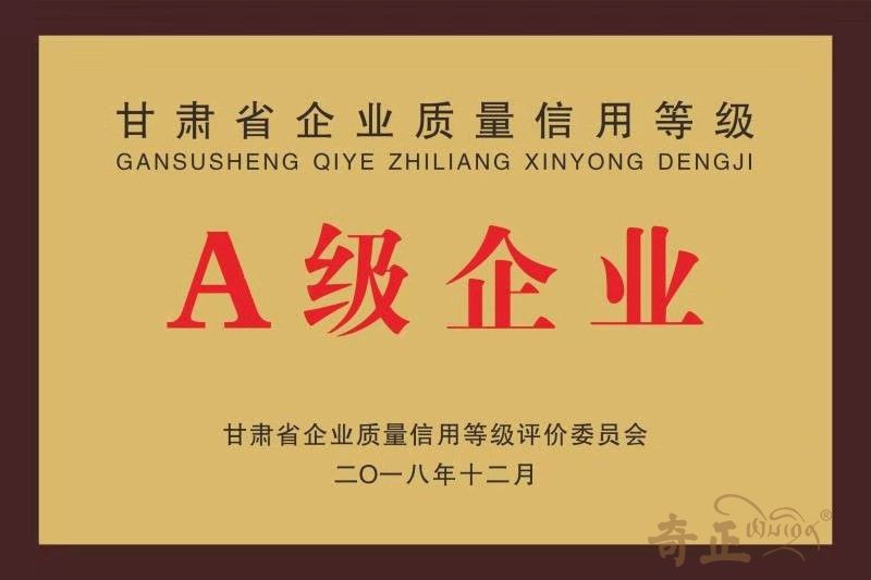 甘肅省質(zhì)量信用等級A級企業(yè)(2018.12)