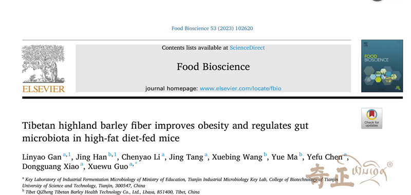 近日,奇正青稞在天然食品功能性研究領(lǐng)域取得突破進展,對以青稞精華層為原料制成的營養(yǎng)食品原料青稞高纖粉(T-fiber)進行了功能性研究,分別以第一作者身份在國外核心期刊《Food Bioscience》和《Journal of Food Biochemistry》上發(fā)表,在全球范圍內(nèi)為青稞的功能性深加工以及青稞原料的營養(yǎng)價值研究提供了重要貢獻。