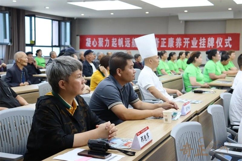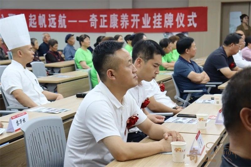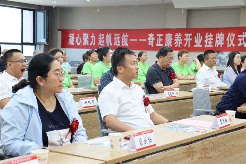 在現(xiàn)場(chǎng)熱烈的掌聲中,領(lǐng)導(dǎo)嘉賓共同為奇正康養(yǎng)揭牌。紅布緩緩揭開,牌匾熠熠生輝,象征著奇正康養(yǎng)正式揚(yáng)帆起航。