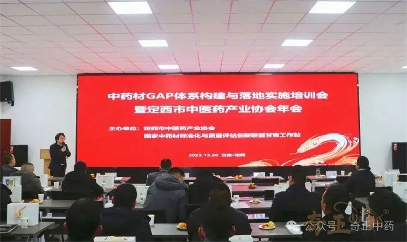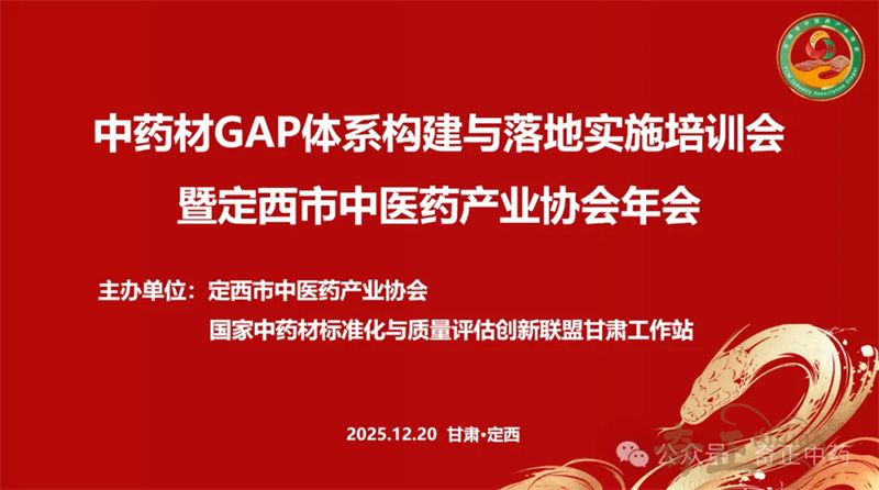 2025年12月20日,“中藥材GAP體系構(gòu)建與落地實(shí)施培訓(xùn)會(huì)暨定西市中醫(yī)藥產(chǎn)業(yè)協(xié)會(huì)年會(huì)”在甘肅省定西市隴西縣成功舉辦。會(huì)議由定西市中醫(yī)藥產(chǎn)業(yè)協(xié)會(huì)與國(guó)家中藥材標(biāo)準(zhǔn)化與質(zhì)量評(píng)估創(chuàng)新聯(lián)盟甘肅工作站聯(lián)合主辦,隴西奇正藥材有限責(zé)任公司、甘肅渭水源藥業(yè)科技有限公司、甘肅隴萃源百草中藥材有限責(zé)任公司共同協(xié)辦。來自行業(yè)協(xié)會(huì)、生產(chǎn)企業(yè)、種植基地、科研院所以及政府相關(guān)部門的百余位代表齊聚一堂,共同探討新版GAP標(biāo)準(zhǔn)的落地實(shí)踐與產(chǎn)業(yè)高質(zhì)量發(fā)展路徑。