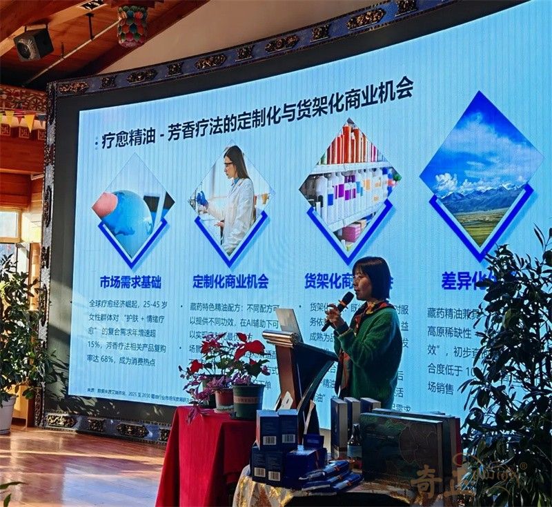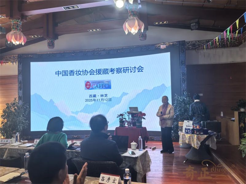 考察期間,中國香精香料化妝品工業(yè)協(xié)會(huì)副秘書長兼辦公室主任李英,系統(tǒng)介紹了協(xié)會(huì)在政策解讀、法規(guī)制定、技術(shù)創(chuàng)新、產(chǎn)業(yè)發(fā)展、國際合作交流及信息服務(wù)等方面的核心職能,清晰闡釋了協(xié)會(huì)作為“政府與企業(yè)間橋梁紐帶”的作用,為雙方未來更緊密合作奠定堅(jiān)實(shí)基礎(chǔ)。奇正集團(tuán)林芝雪域公司綜合事務(wù)部副經(jīng)理羅珍向?qū)<覉F(tuán)簡要匯報(bào)了集團(tuán)發(fā)展歷程、企業(yè)理念,以及各業(yè)務(wù)板塊在所屬領(lǐng)域取得的突出成就。針對(duì)藏藥化妝品未來具體發(fā)展方向,股份公司戰(zhàn)略規(guī)劃部總監(jiān)兼董事長助理石翠分享了以“喜瑪雅拉”為核心的特色化妝品品牌藍(lán)圖,清晰勾勒出“藏地文化+現(xiàn)代美學(xué)”融合的產(chǎn)品開發(fā)路徑;種植負(fù)責(zé)人牟思維博士從科學(xué)維度,詳細(xì)匯報(bào)了公司在西藏特色植物原料研究進(jìn)展、成分功效及可持續(xù)利用方面的探索實(shí)踐,充分展現(xiàn)了奇正在原料端的扎實(shí)基礎(chǔ)與科研硬實(shí)力;研發(fā)工程師俞金蓉分享了藏藥養(yǎng)生護(hù)膚的“三因理論”與阿育吠陀理論,為產(chǎn)品研發(fā)提供了傳統(tǒng)醫(yī)學(xué)支撐。